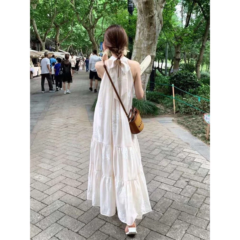 Váy Maxi Đi Biển Cổ Yếm Thêu Hoa!