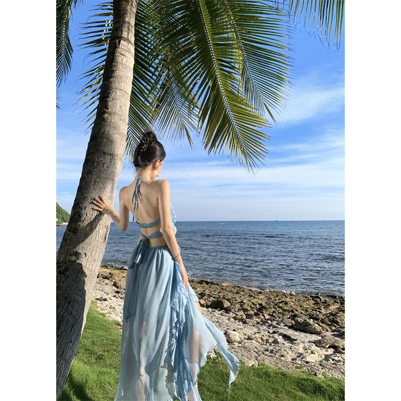Đầm maxi màu xanh dương nhạt, hoàn toàn phù hợp với mục đích đi biển, đặc biệt là biển Đà Nẵng! Không chỉ thiết kế, chất liệu vải, mà giá rất hợp lý, khi mua tại shopee chỉ 369k. Bạn hoàn toàn có thể quay video khi mở hàng, để đổi sản phẩm khi bị lỗi trong vòng 3 ngày.